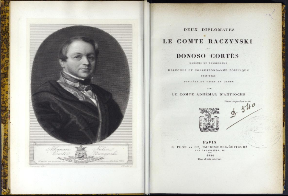 - Carta del conde Raczynski a Donoso del 30 de agosto de 1850.